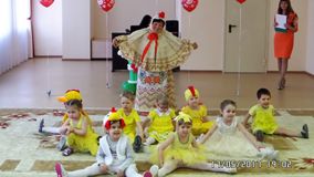 Ярким и милым для зрителей стал номер "малышей-цыплят" с "мамой-курочкой", в роли которой была воспитатель группы. Желтенькие цыплятки станцевали нам свой танец и покружили хоровод.