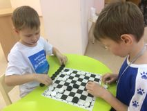 На базе 18 детского сада прошли соревнования по шашкам среди детских садов микрорайона "Парковый".(Более подробно) Наш детский сад представляла команда из 4 воспитаннов подготовительных к школе групп: Демид,Кирилл,Таисия и Аня.