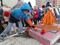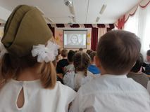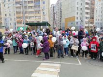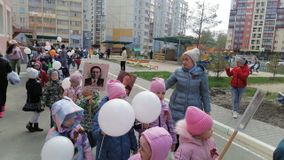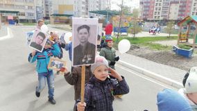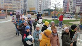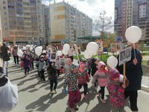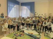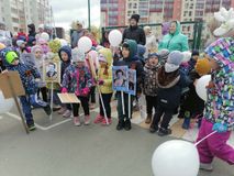 Несмотря на свой еще совсем юный возраст, дошкольники, почувствовали себя сопричастными к истории нашей страны. Воспитанники с гордостью несли на груди символ Победы – георгиевские ленты, а в руках – цветы, флаги, шары и фотографии родственников, воевавших и отдавших свою жизнь за наше будущее. В каждой семье есть свои Герои. Это наши прадедушки и прабабушки - все, кто победил в Великой Отечественной Войне.