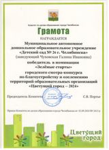 Наш детский сад принял участие в конкурсе "Цветущий город-2024", по итогом заочного этапа смотра-конкурса комиссией отобраны 27 образовательных организаций-финалистов. Мы попали на город!