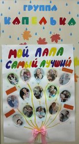 В нашем детском саду в рамках утвержденного плана были проведены ряд мероприятий, посвященных данному празднику: создавались видеоролики «Зарядка вместе с папой», изготовили фотоколлажи «Вместе с папой…», проведены тематические беседы и вечера стихов «О папе», фотосессия «В детский сад вместе с папой», выставка рисунков «Мой любимый папа!», чтение произведений о папе, просмотр мультфильмов, слушание песен. Также воспитанники всех групп изготовили для пап поздравительные открытки и сувениры.