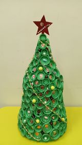 58 чудесных игрушек были сделаны для нашего конкурса! Ёлочные шары, весёлые снеговики, снежинки, колокольчики, новогодние венки... Всего не перечислить! В качестве материала были использованы пластиковые бутылки, стаканы, ложки, банки, пакеты, фольга и остатки ненужной бумаги. Девиз нашего конкурса: «Скажем мусору – «Нет», а красоте – «Привет»! Даём вторую жизнь ненужным вещам!»