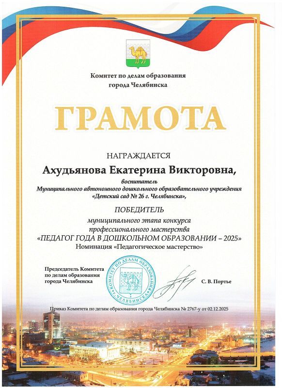 24 декабря 2025 года, во Дворце пионеров и школьников им. Крупской прошел праздничный приём Главы, посвящённый Новому году и подведению итогов профессиональных педагогических состязаний. В ходе торжества были награждены победители муниципального этапа Всероссийских конкурсов профессионального мастерства.