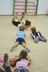 Ну а чтобы ручки-глазки не устали мы долго сидеть не стали и все по очереди посетили мастер-классы наших инструкторов по физическому воспитанию в спортзале. Здесь была фитнес-разминка и расслабляющий релакс с элементами йоги. А какими спортсменками оказались наши мамы! Вдохновленные взглядами детей они ни на секунду не отставали от тренеров.
