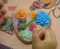 Здесь можно было все! Узнать про изящное украшение волос, сделать великолепную открытку маме и бабушке, украсить пряники ароматной кондитерской мастикой, создать фигурки и композиции из соленого теста, скрутить куклу-оберег для дома и смастерить куклу-закрутку и еще много-много всего интересного. Что, как оказалось, только не умеют делать наши мамы! Кстати, мастер-классы в группах вели и они, и воспитатели. А уж народу-то собралось - аншлаг во всех группах! Вот какие у нас активные мамочки-молодцы!
